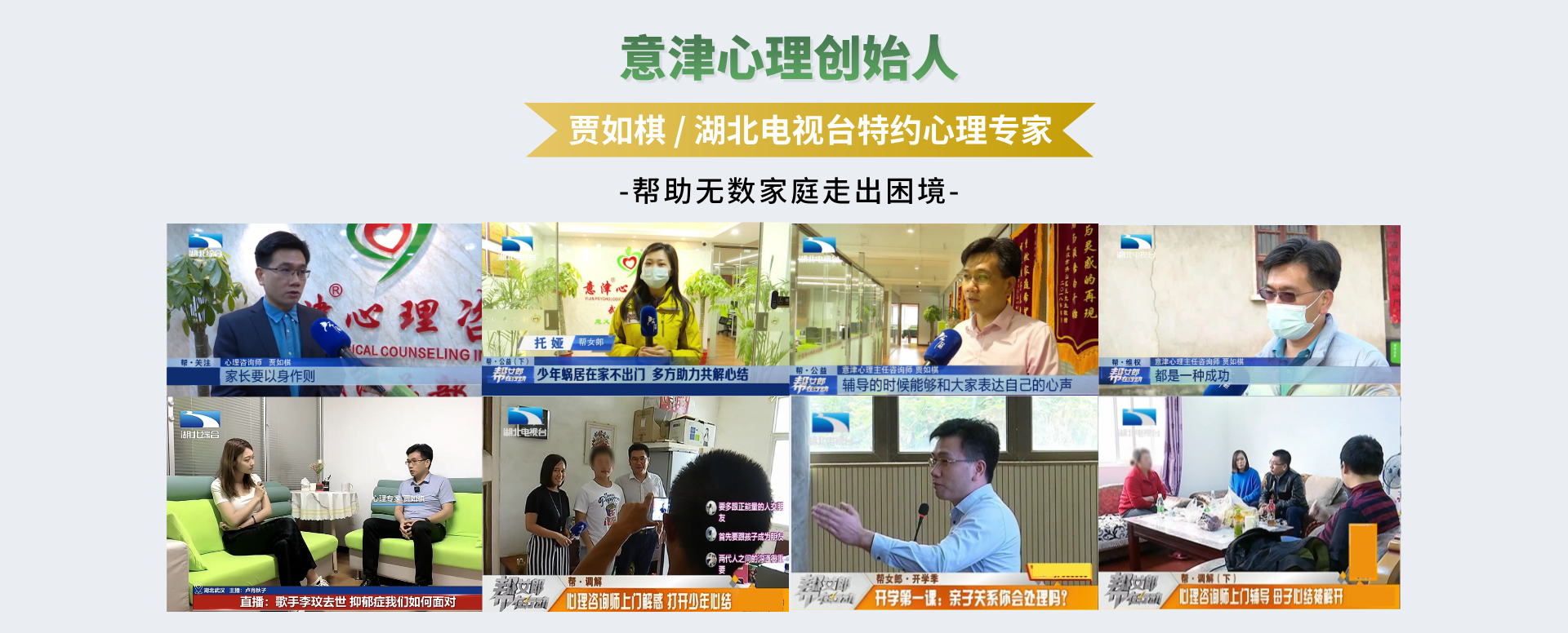 2010年意津心理工作坊創立,2014年武漢意津心理咨詢有限公司成立,2018年直屬分支機構意津心理孝感分中心成立。十余年來,專注為各類人群提供專業定制化心理服務,同諸多企事業、政府部門、高等院校、軍隊等單位建立了高質量合作關系,已成功接待案例數30萬+,在專業領域獨樹一幟、口口相傳。 意津心理由擁有近二十年臨床一線心理咨詢經驗的知名心理學家賈如棋教授創辦,嚴格遵循心理咨詢標準流程與倫理規范,結合中國特色與文化,研發了更適合中國人的心理咨詢理論及技術,并以“全球視野、本土洞察”的格局,引進國際心理服務模式,借鑒心理學、管理學前沿理論與實踐經驗,咨詢案例遍及東南亞、澳洲、大洋洲、美洲、歐洲。 多年來,意津心理不僅建立了個案心理健康數據庫,還積累了大量行業的EAP服務解決方案。意津心理以國民心理健康與幸福為己任,孜孜不倦,將意津文化理念“意義淵長,津潤心田”傳遞到社會各個角落,致力于從科學心理學的角度,幫助到更多個體和家庭走出心理甚至命運困境,協助更多企業及單位長期健康發展與運營!